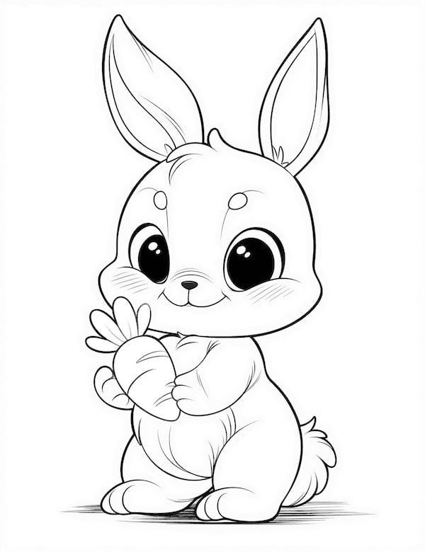 These coloring pages can also be educational, teaching children about different bunny breeds, colors, and habitats. They can also help improve fine motor skills and hand-eye coordination as kids carefully color within the lines and blend different hues together.