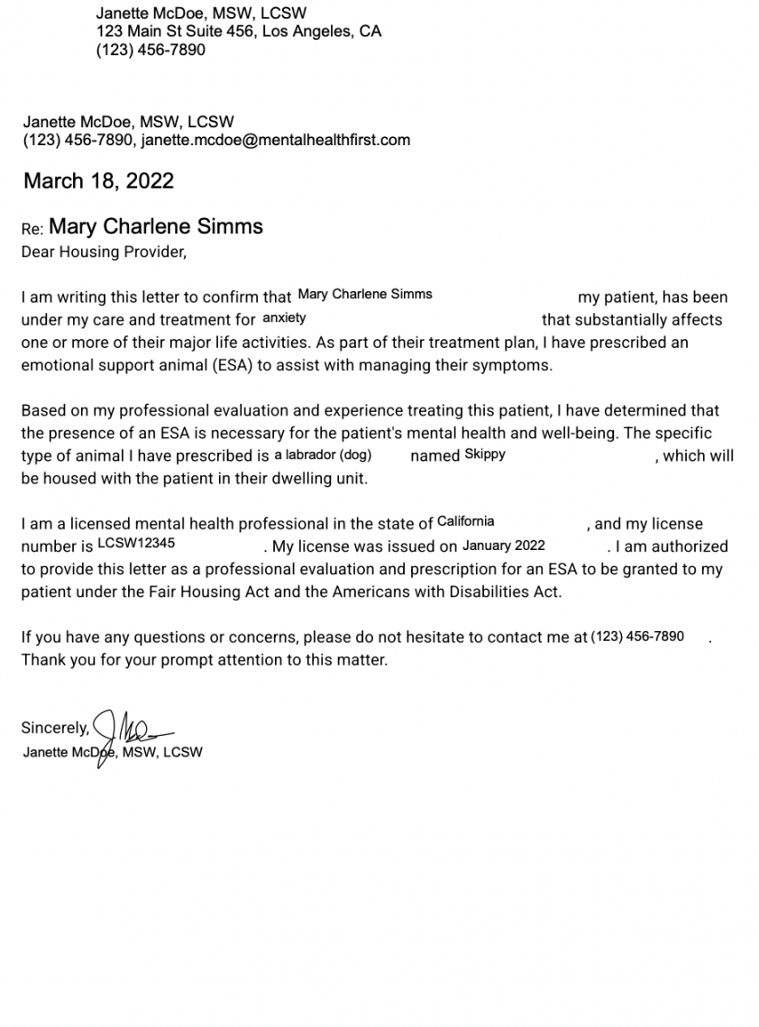 Free Emotional Support Animal Letter Pdf Fill Online Printable (emetonlineblog.com)