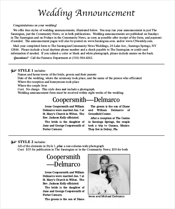 Download and Print Free Printable Wedding Announcement Templates Listed below