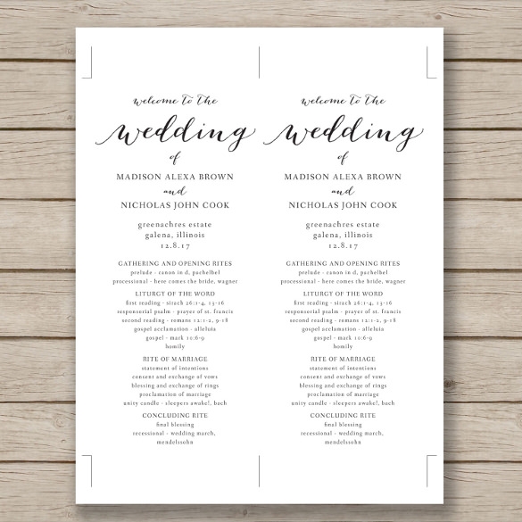 Download and Print Free Printable Wedding Program Templates Listed below