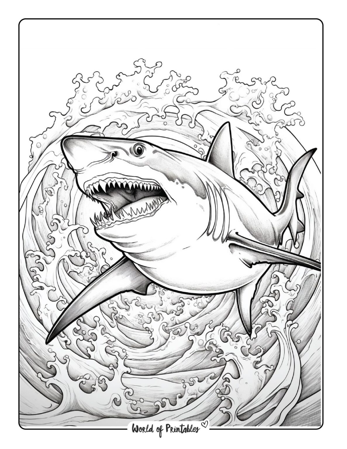 Shark Coloring Pages For Kids Adults World Of Printables (worldofprintables.com)