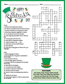 St Patricks Day Crossword Puzzle Printable For Adults